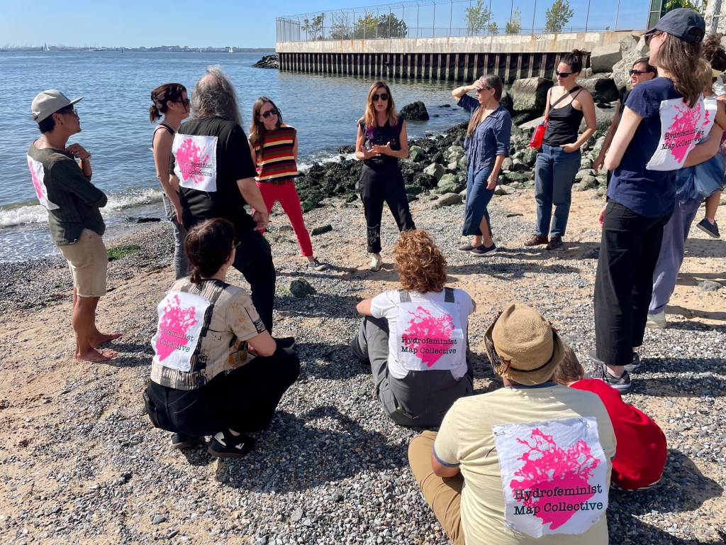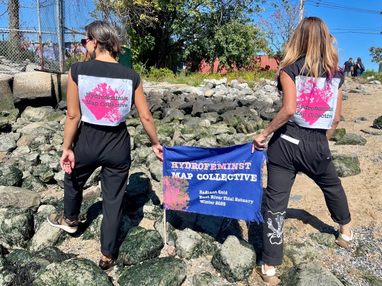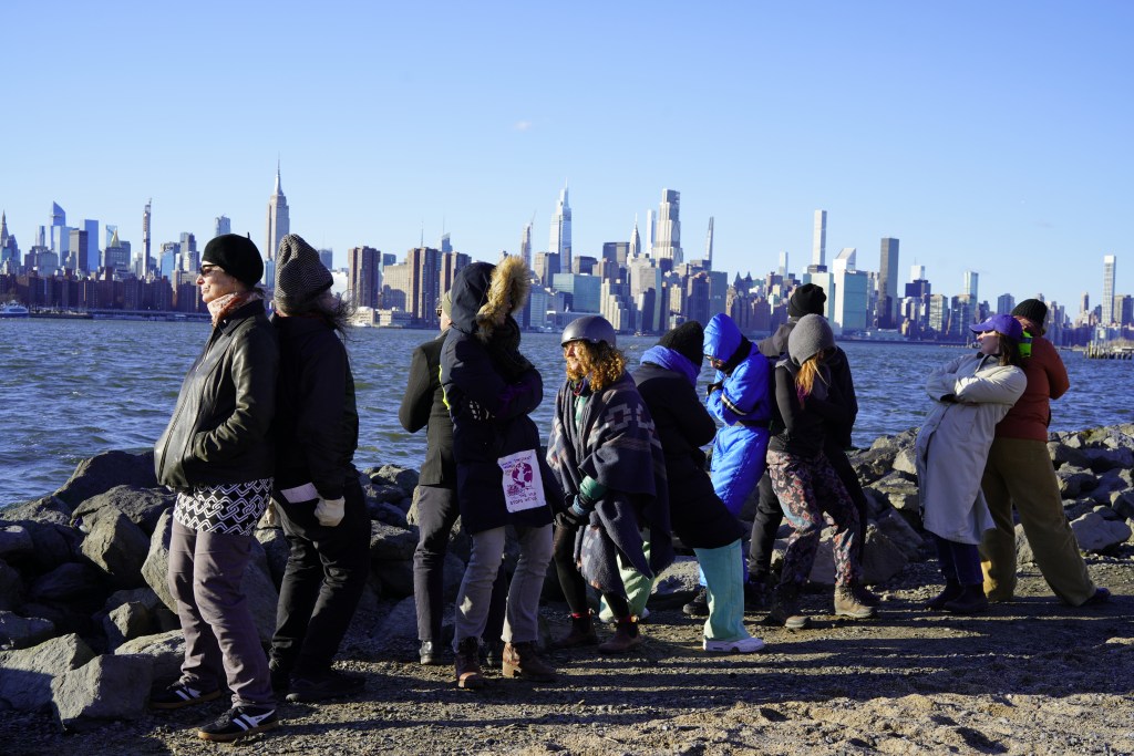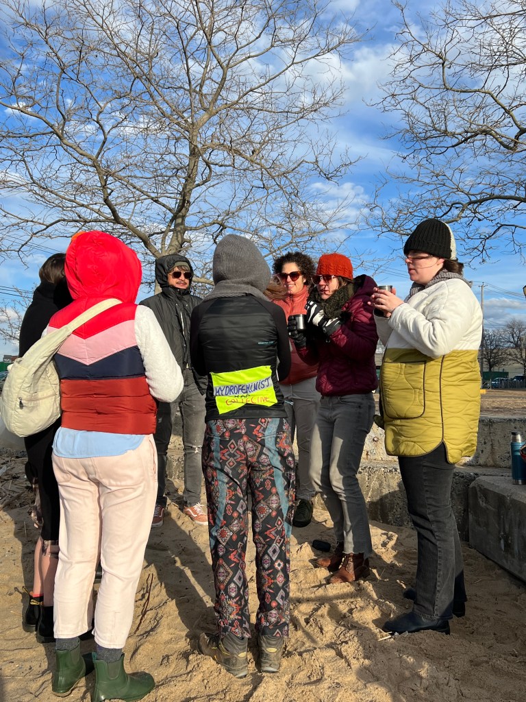 Formed in September 2024 by Nora Almeida, Estefania Mompean Botias, andrea haenggi, and Jordan Packer, the Collective explores relationships between human bodies and water bodies through somatic and interventionist public actions in the context of climate chaos. At the heart of our project is the concept of the “sentinel body”—a body attuned to its surroundings, sensing and transmitting subtle shifts in the environment. Through this awareness, we explore what it means to “become with water,” cultivating a deeper relationship to the ecological and social dynamics of urban waterscapes.