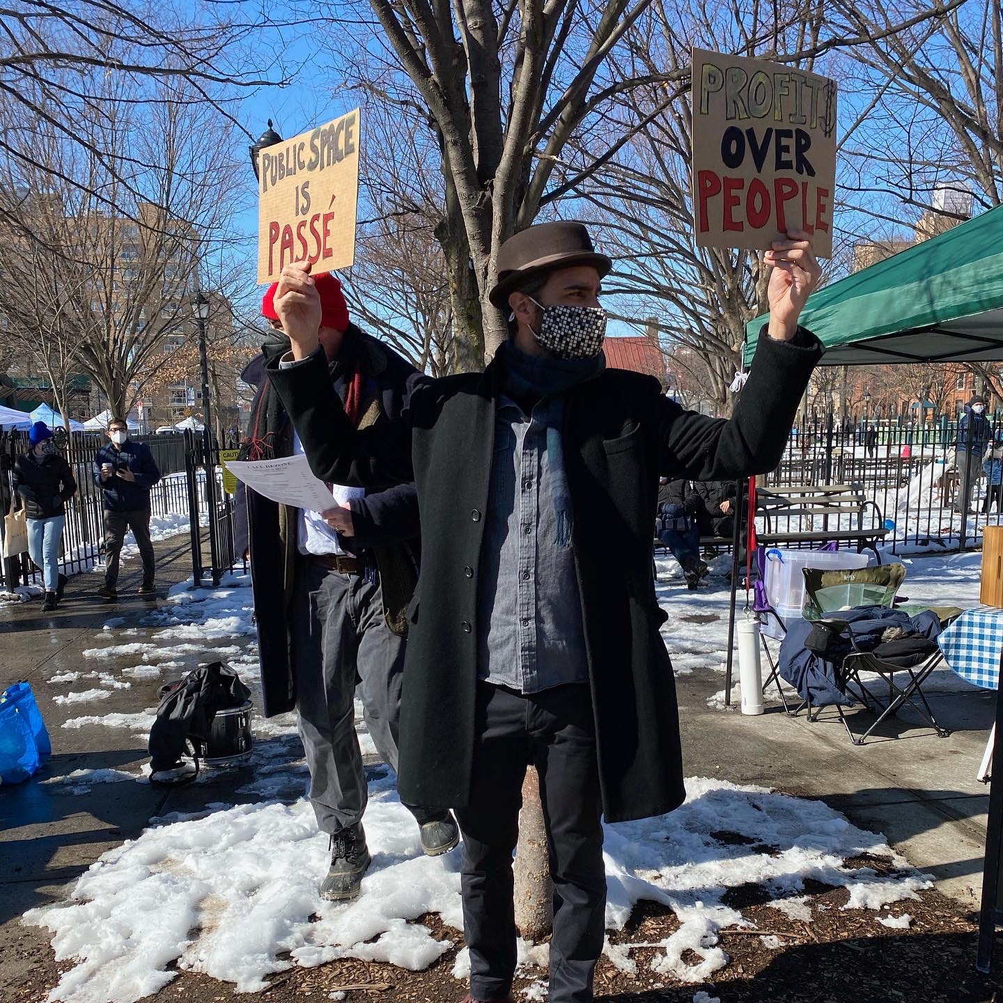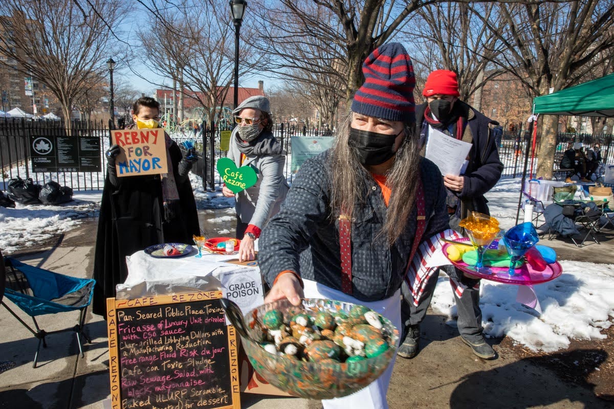 Pop-up satirical performances conducted in February and March 2021 to highlight environmental issues in Gowanus, raise community awareness about the rezoning proposal, and draw attention to real estate speculation and developer tax subsidies. Featuring terrible people, inedible food, and underpaid waiters. Additional photographs by Eric McGregor. Write up in local blog.
