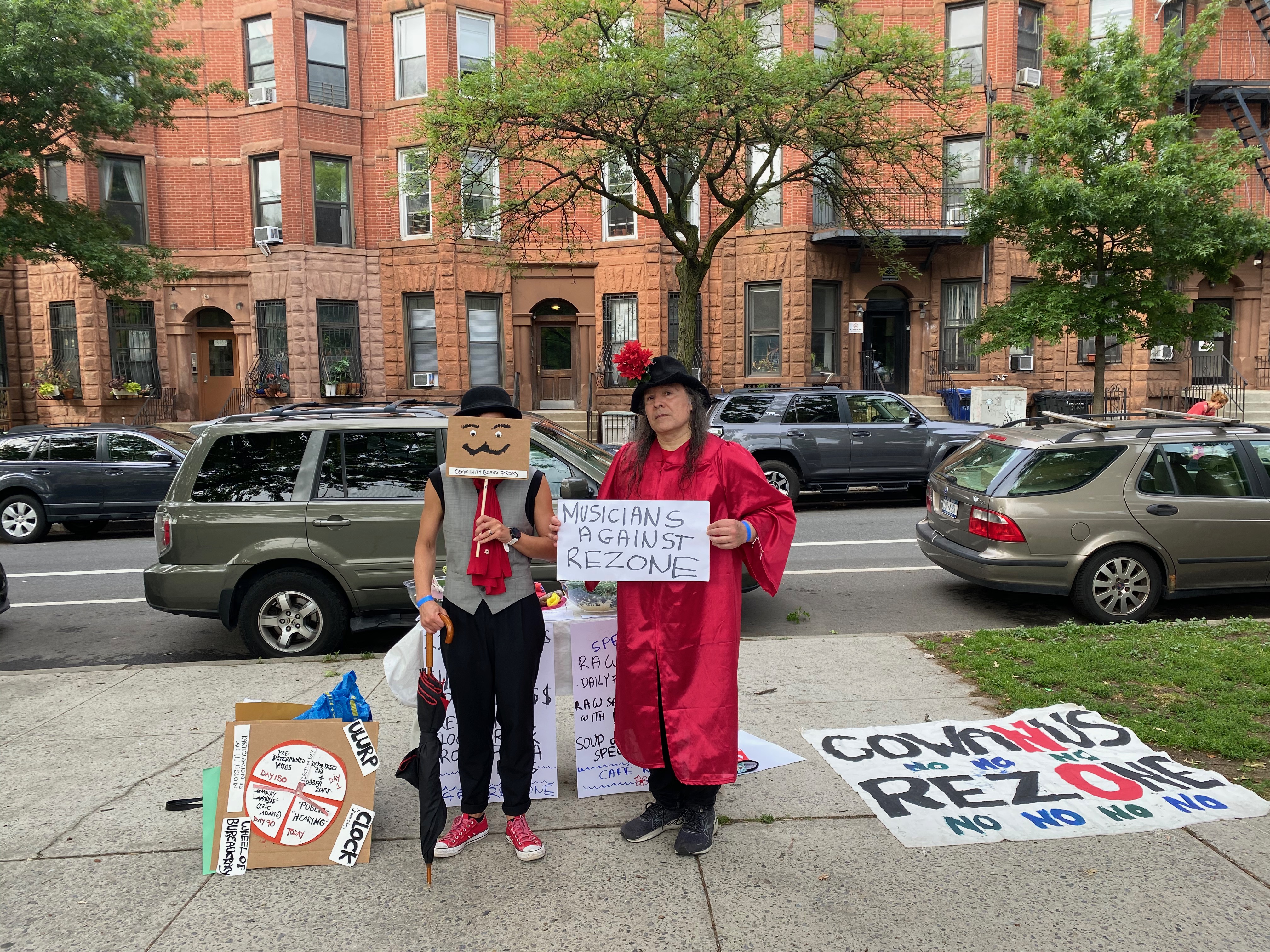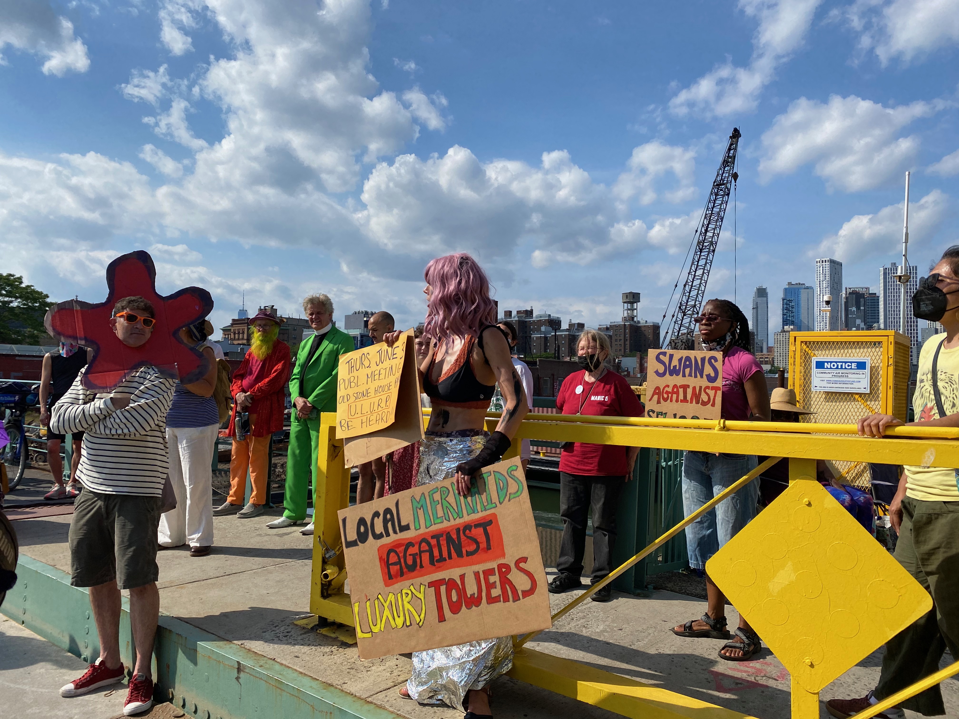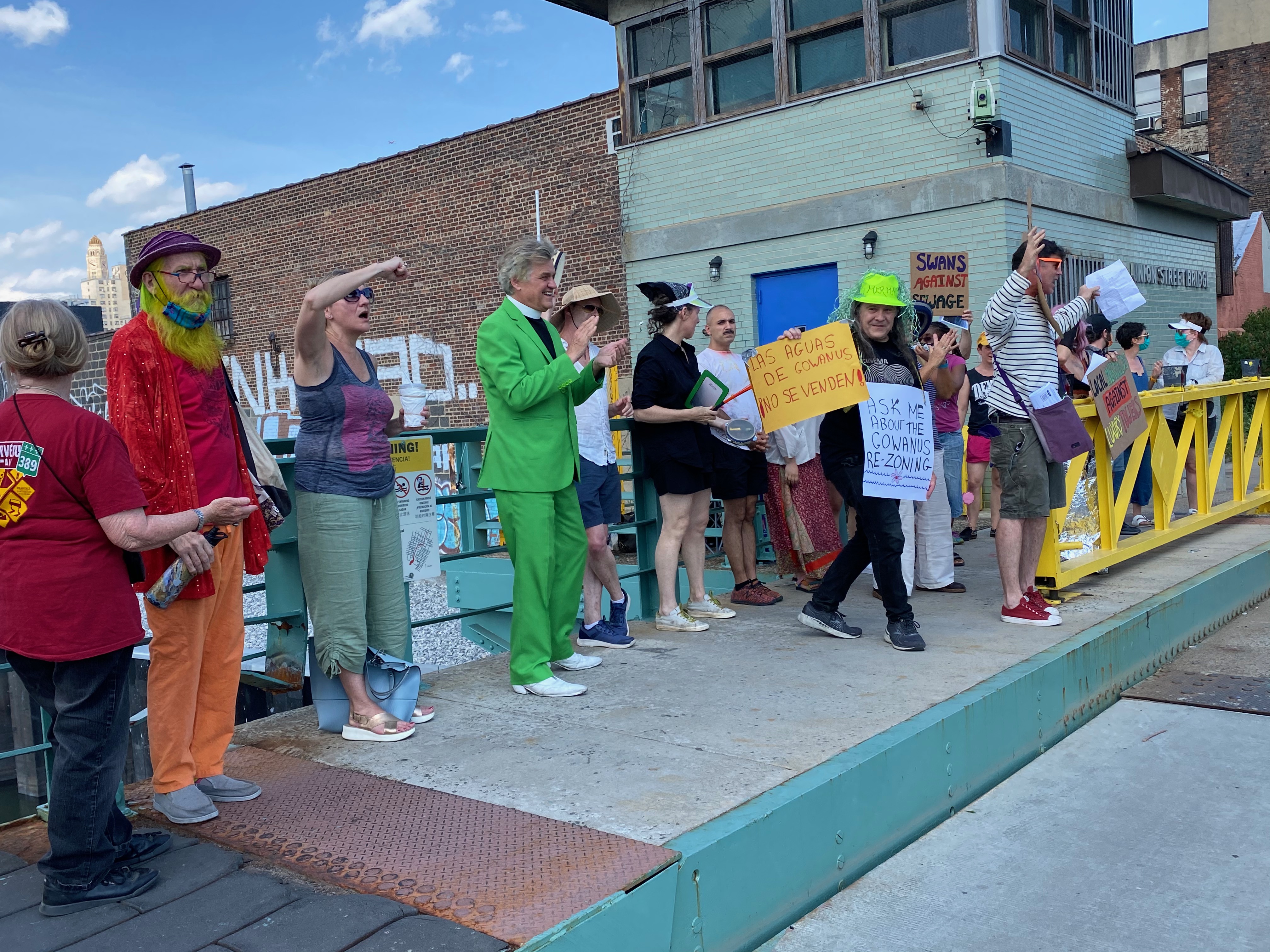Performances and protests conducted at, prior to, and during community hearings about the Gowanus Rezone at Washington Park and Borough Hall accompanied by the punk band Resistance Company and at the intersection of 4th avenue and Union Street during the final City Council land use hearing (in swimwear).