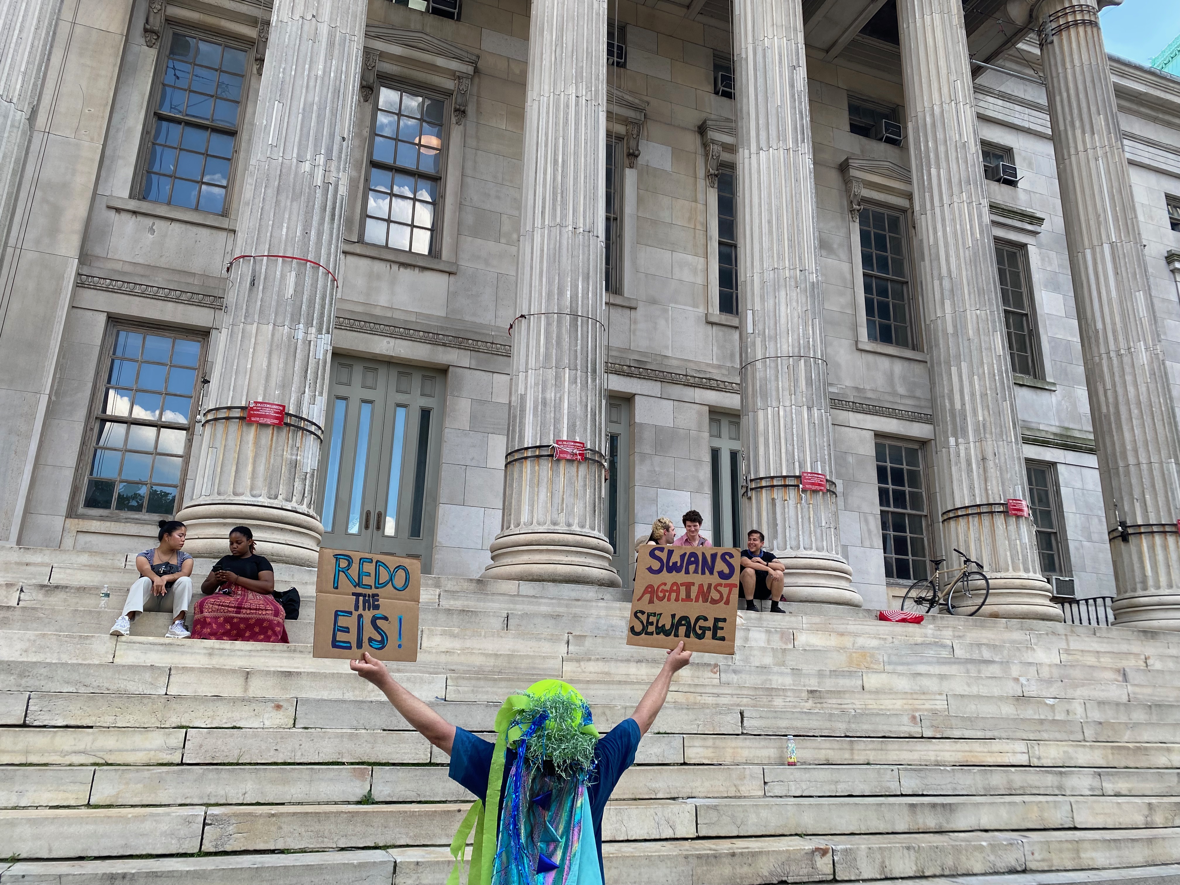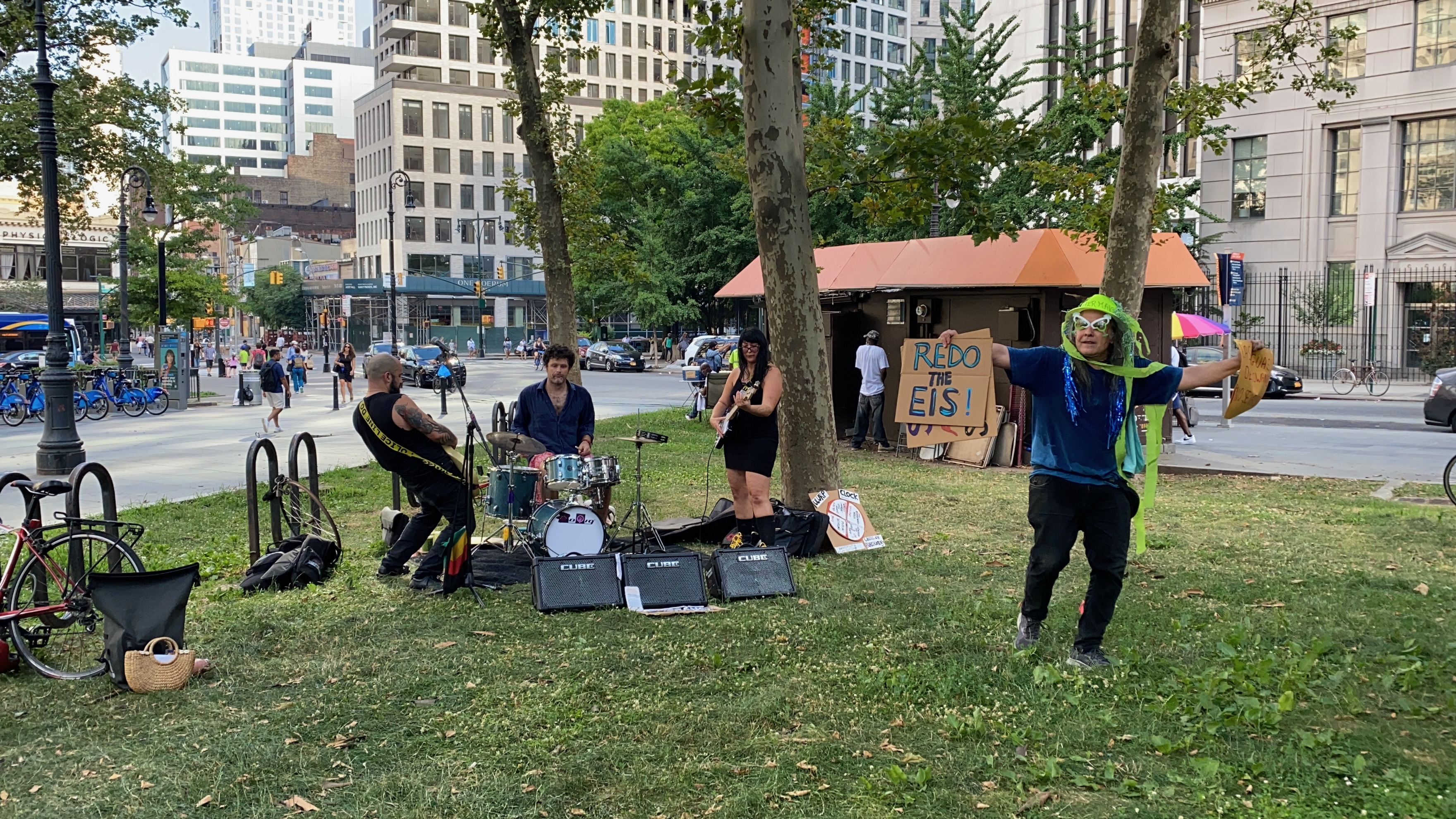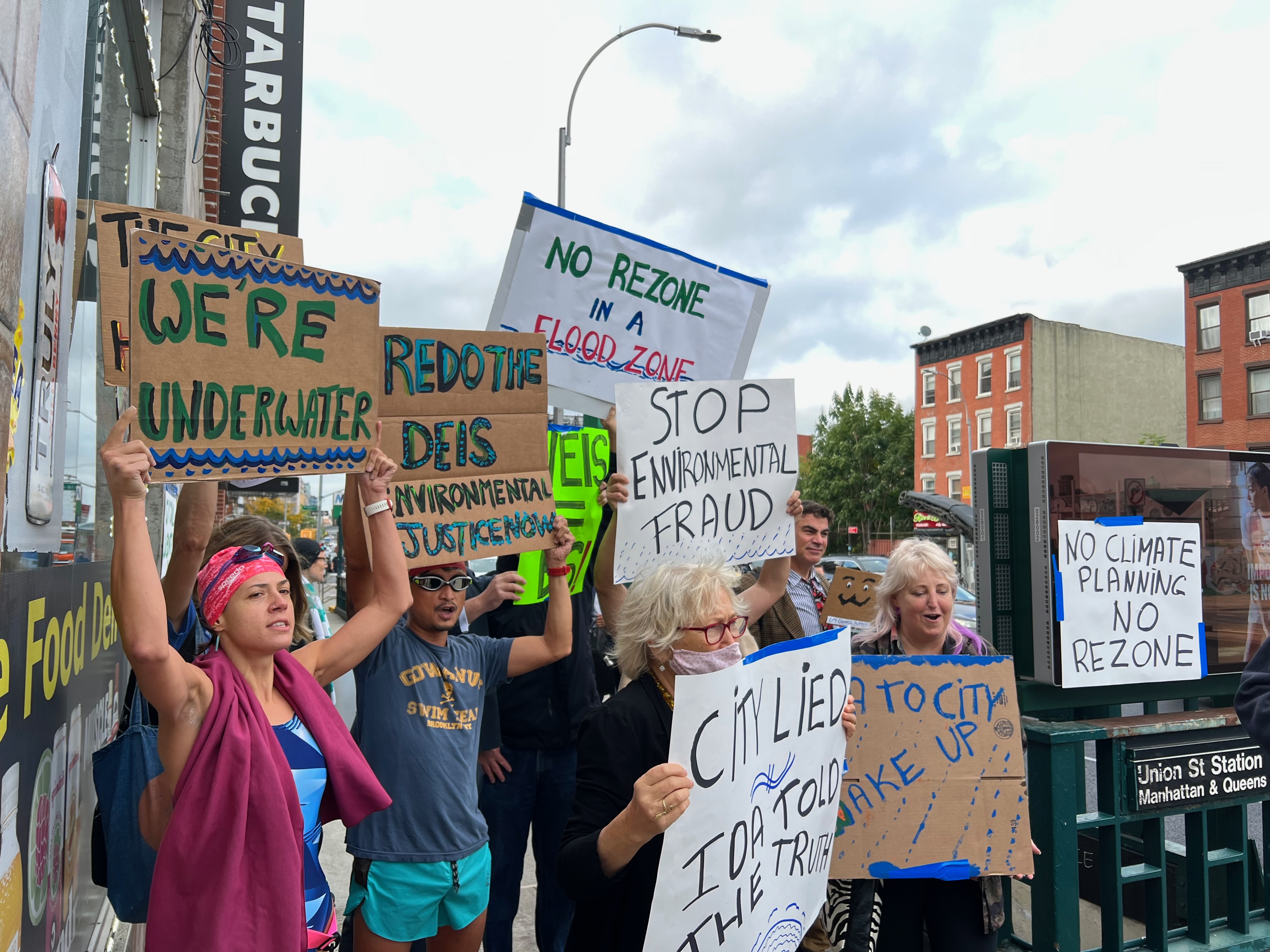 Performances and protests conducted at, prior to, and during community hearings about the Gowanus Rezone at Washington Park and Borough Hall accompanied by the punk band Resistance Company and at the intersection of 4th avenue and Union Street during the final City Council land use hearing (in swimwear).