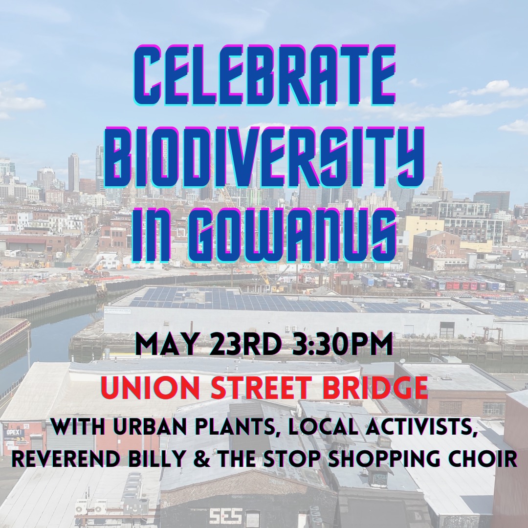 Celebration of Biodiversity Day with Reverend Billy and the Stop Shopping Choir, Voice of Gowanus, and Gowanus Artists In Alliance. This May 2021 event included real mermaids and a live musical performances on the banks of our favorite superFUN Superfund site. Attendees were invited to share their favorite stories about Gowanus, a former marsh that is still home to birds, plants, fish, and people.